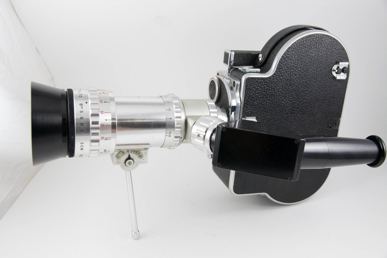 An early Bolex 16mm camera with a reflex 17-70 Som Berthiot lens. My film mentor, Hack Swain, said the lens was a Coke bottle, and only 1 in 3 were any good! This is the same camera I dragged to May Day 1971, in Washington, D.C. I was one of very few student filmmakers at that event to return with my camera and film intact!